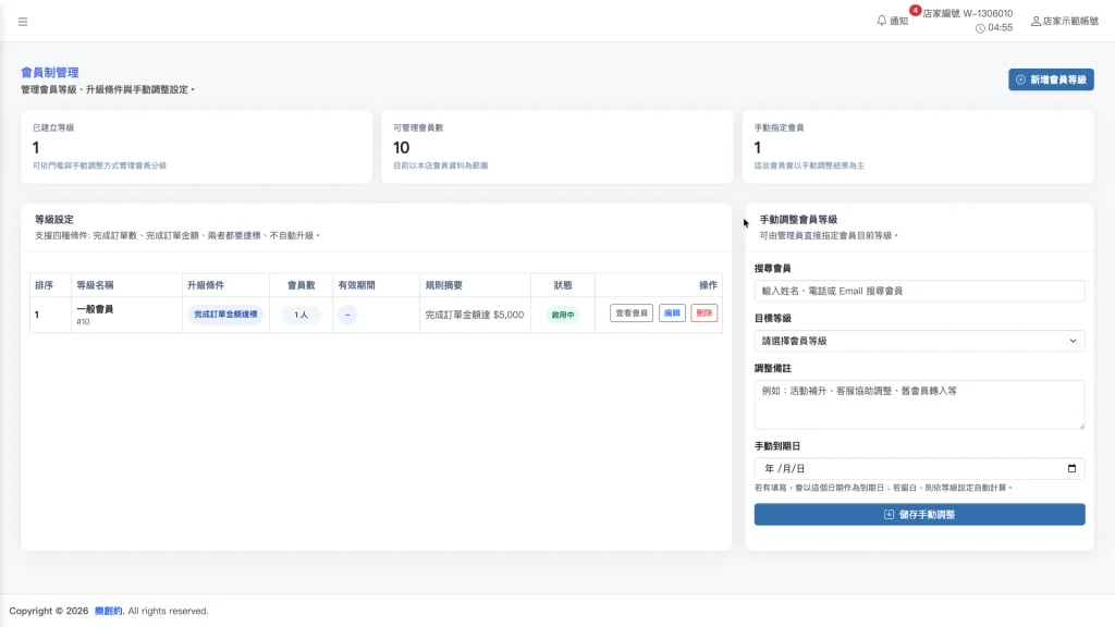 👉 操作位置 【會員制管理】→ 點擊「+新增會員等級」 #