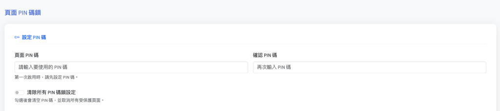 您可以自行設定一組 PIN 碼,作為進入受保護頁面的驗證方式。